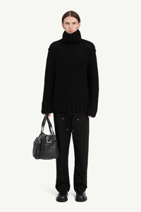 Cosy and tactile, this chunky turtleneck reflects MM6’s affinity for deconstructed silhouettes and homespun textures. Knitted in Italy from pure wool, it features exposed seam detailing, drop shoulders and exaggerated proportions – amplifying a sense of softness and scale. Product Details Item ID SH2HA0008M13166900 Primary fabric: 100% Wool Chunky knit turtleneck Exaggerated collar Drop shoulders Exposed seam detail Wide ribbed trims at the cuffs and hem Made in Italy Model is 186 cm tall and wears a size M.