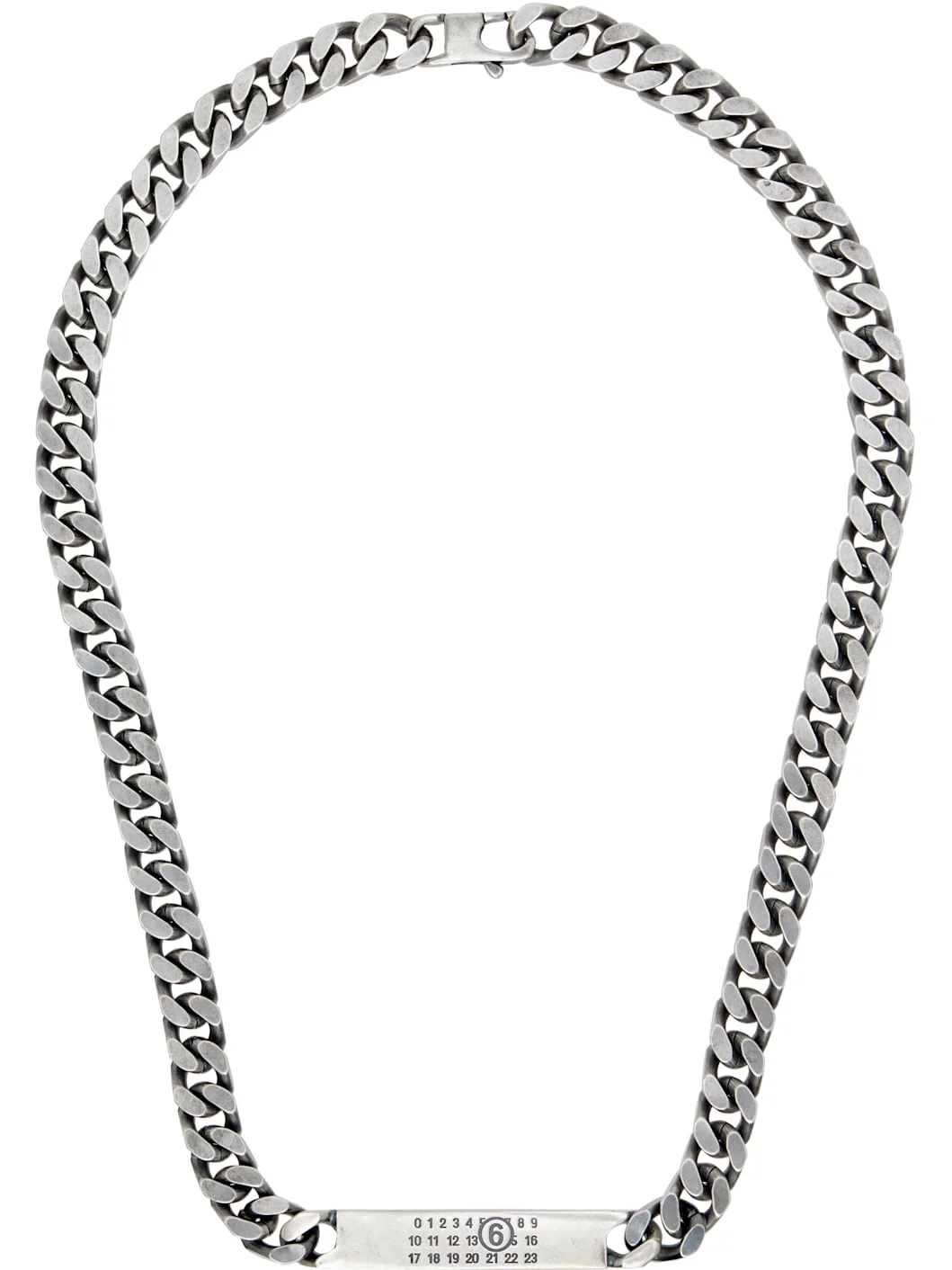 Curb-chain necklace in antiqued silver-tone brass. · Logo plaque at drop · Lobster-clasp fastening · L20.5" Supplier color: Gray Brass. Made in Italy 261188M145005
