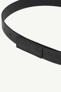 This croc-embossed belt is wrapped entirely in texture, its closure reduced to a discreet loop. Minimalist in construction and finish, the MM6 numeric signature is subtly stamped at the squared end – a quiet emblem of identity. Product Details Item ID SA6TP0047P8650T8013 Primary material: 100% Calf Leather Secondary material: 100% Calf Leather Metallic hardware Croc-print embossed belt Squared end Embossed numeric signature Made in Italy