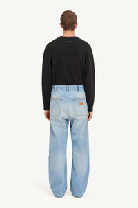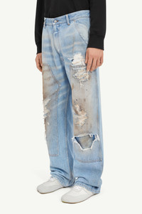Distressed with intent, these 5-pocket jeans redefine the boundaries of wear and creation. Belt loops preserve utility, while MM6’s numeric artwork tag and signature white stitch line at the back lend subtle recognition to a piece that embraces the raw and unconventional. Product Details Item ID SH2LA0017M30018964 Primary Fabric: 100% Cotton Pocket Lining: 65% Polyester 35% Cotton Application: 100% Cotton Blue denim 5-pockets trousers Regular waist Button closure Belt loops Straight leg Distressed details White stitch line at the back Made in Italy