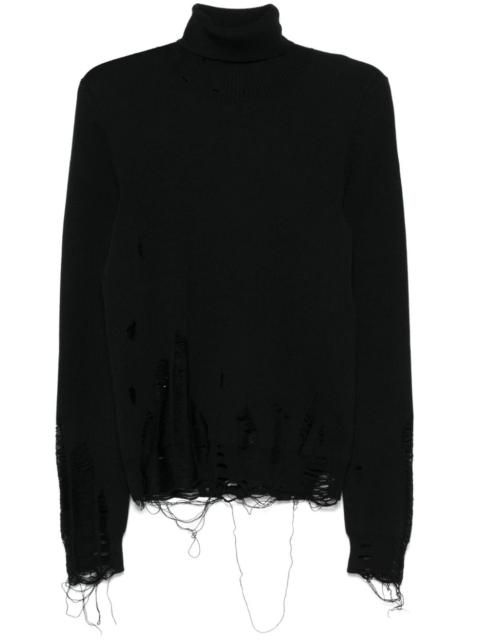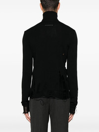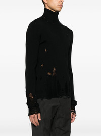 distressed sweater Highlights - Black - Virgin wool blend - Fine knit - Distressed effect - Roll neck - Long sleeves - Ribbed cuffs and hem - Frayed hem Imported Composition Acrylic 50%, Virgin Wool 50% SIZE & FIT Model measurements Height 6 ft 2 in(1.87 m) Bust/Chest 36.22 in(92 cm) Hips 35.43 in(90 cm) Waist 29.13 in(74 cm) FittingInformation Designed for a slim fit, offering a comfortable fit that sits just away from the body Made with a midweight knit, this piece offers some stretch Washing instructions Dry Clean Only