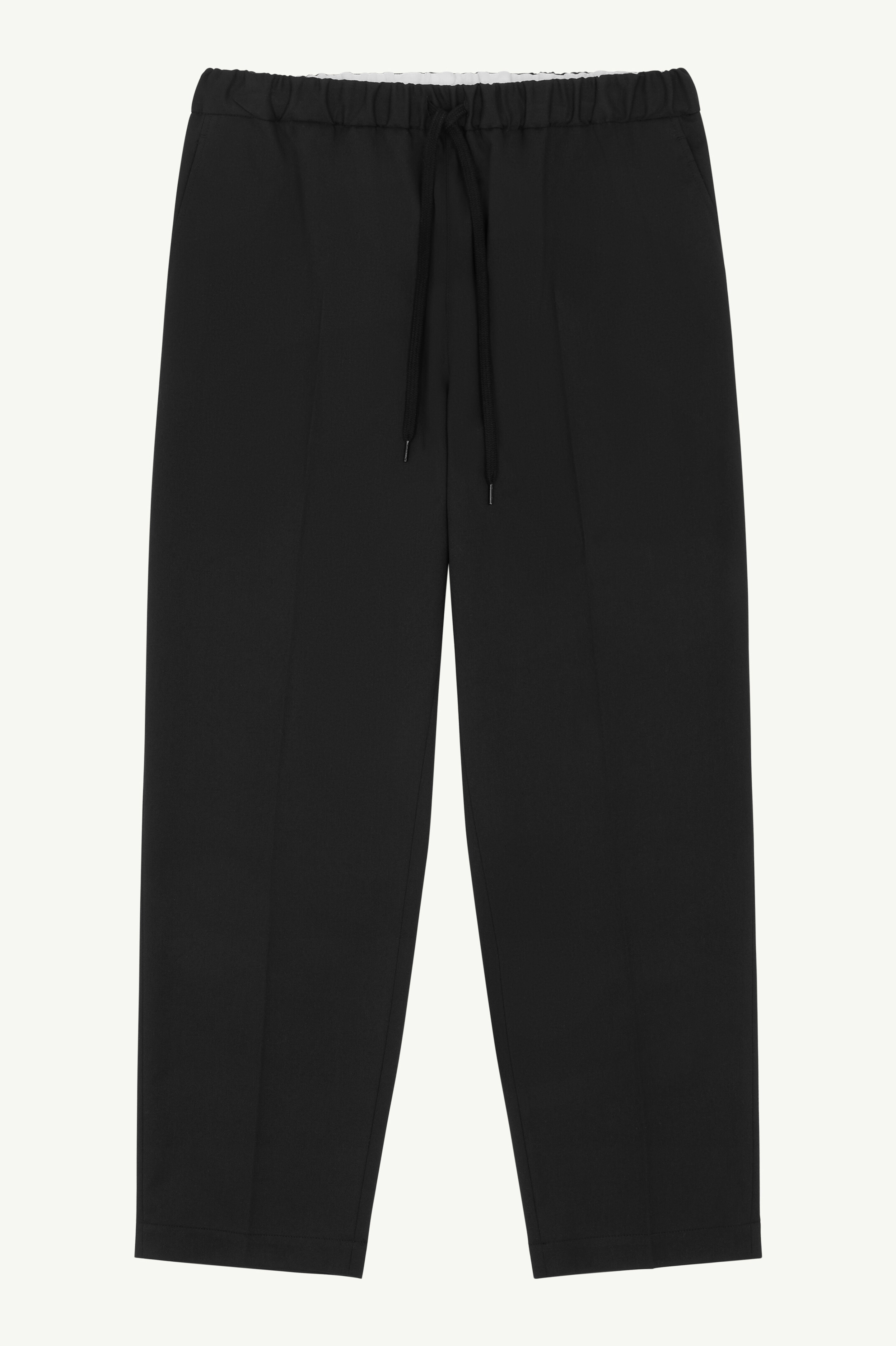 The elasticated regular waist and drawstring closure of these tailored trousers ensure a relaxed fit, while the tapered leg silhouette exudes urban sophistication. Front pleats and practical side pockets add functional elegance. At the back, a subtle white stitch line highlights the MM6 signature. Product Details Item ID SH2KA0020M35227900 Composition: 69% polyester, 30% viscose-rayon, 1% elastane-spandex Pocket lining: 100% cotton Tailoring viscose blend trousers Elasticated regular waist Drawstring closure Tapered leg Front pleats Side pockets White stitch line at the back Made in Italy