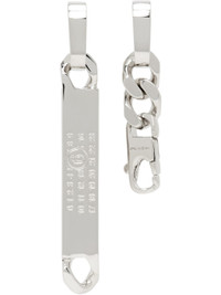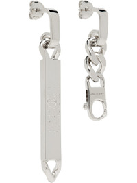 Pair of mismatched drop earrings in silver-tone brass. · Logo plaque at drop · Curb chain and lobster clasp at drop · Post-stud fastening · H2.75" x W0.5"; H1.75" x W0.5" Supplier color: Polished palladio Brass. Made in Italy 252188M144003