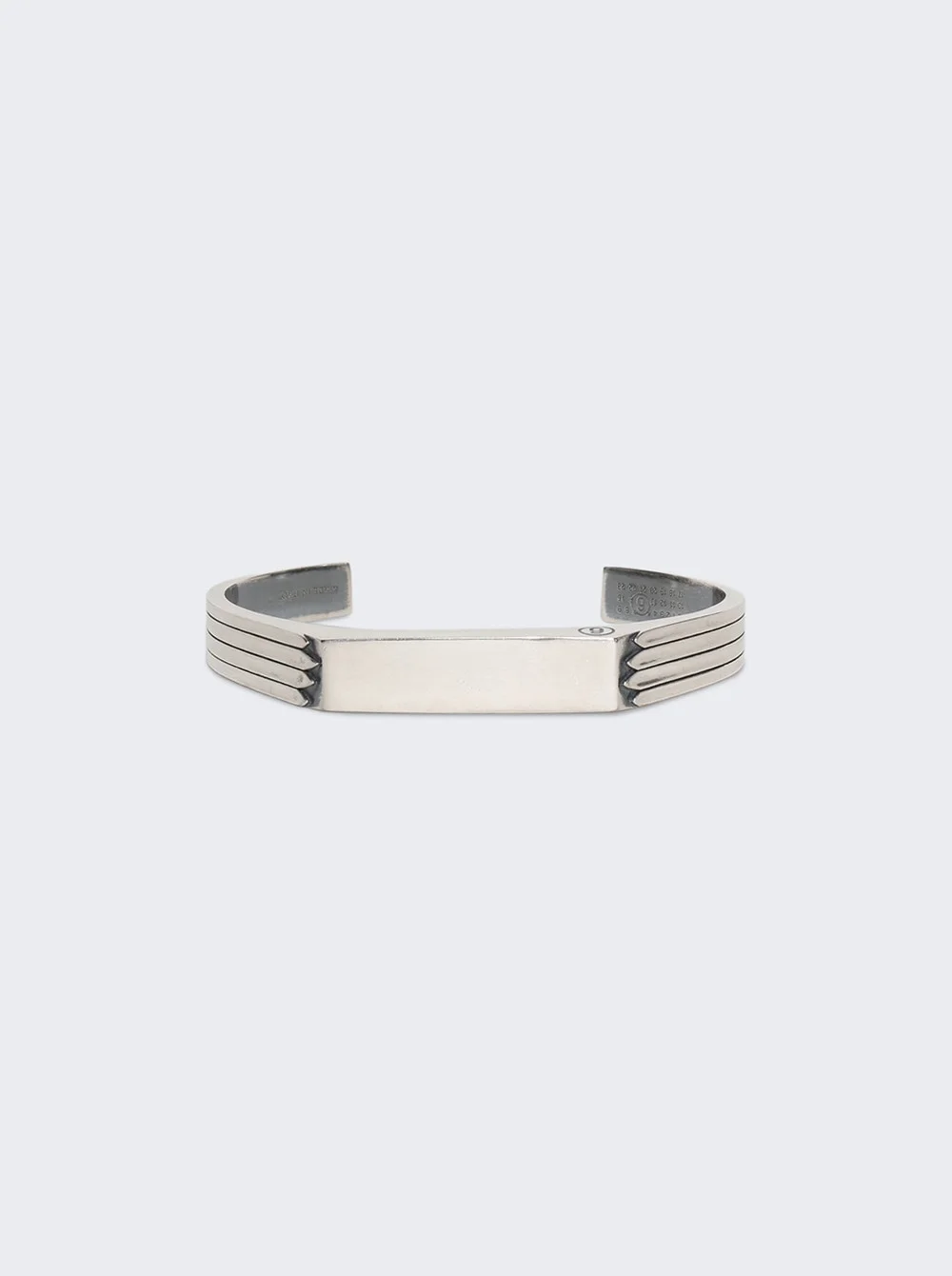 Details - Engraved detailing at sides - Logo engraved at base and inner cuff - Care: To keep the luster of your piece avoid contact with perfumes or lotions. Remove before showering, swimming, or exercise. After each use wipe your piece with a jewelry cloth or cotton ball. - Material: 100% Brass Vendor Color Code: Brand Style: SM7UY0097 P8601 Designer/Brand: MM6 MAISON MARGIELA