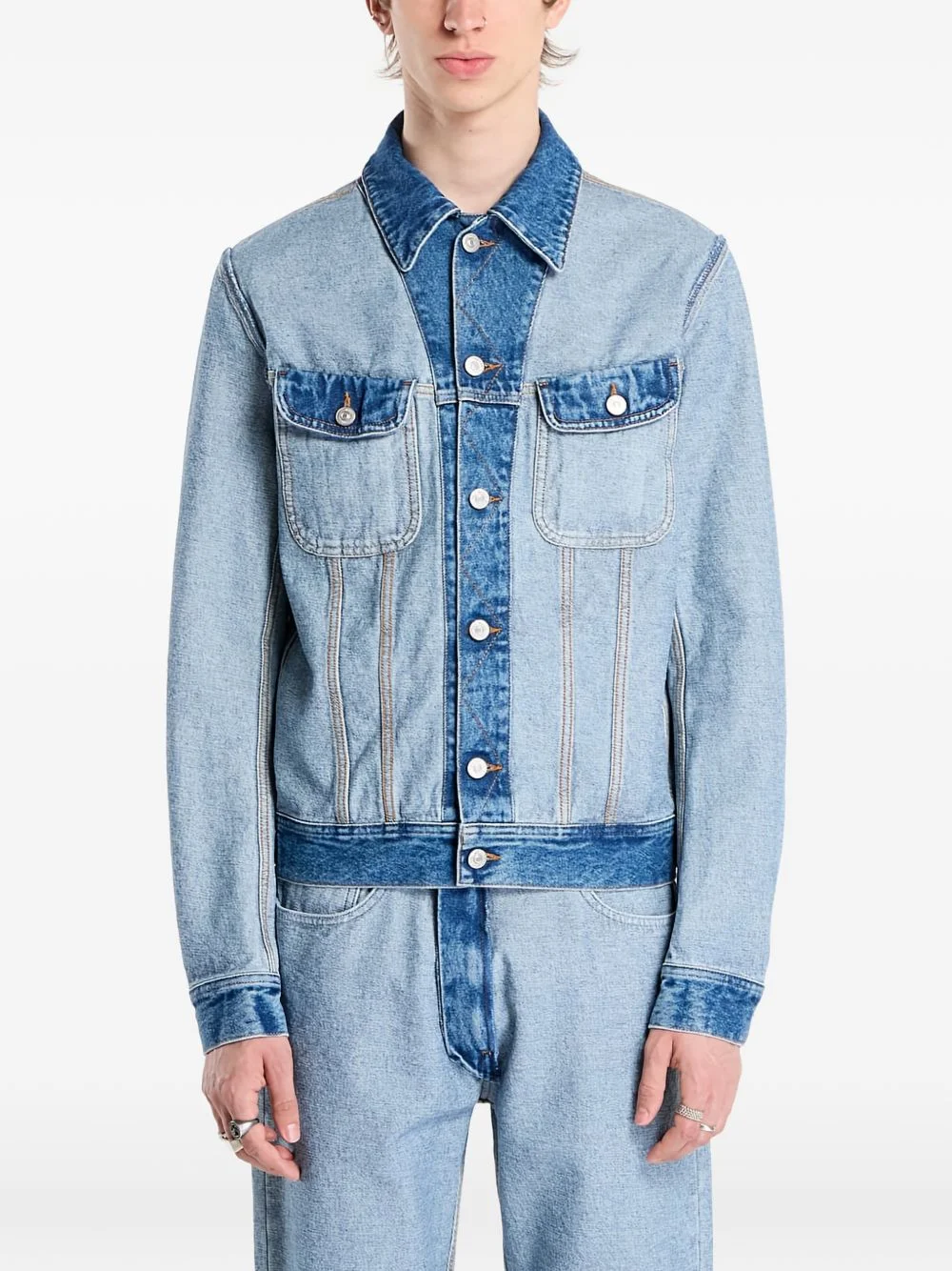 flap-pockets denim jacket Highlights - Blue - Contrast collar - Button fastening - Buttoned cuffs Made in Italy Composition Cotton 100% Washing instructions Machine Wash