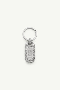 A keyring cast with a crinkled silver-foil effect, transforming a functional object into a sculptural accessory. Its textured surface distorts light, making the Maison's numeric artwork plaque stand out with graphic clarity. Product Details Item ID SM6UA0020P6622956 Composition: 100% brass Contrast: 100% steel One size Textured brass key ring Engraved logo on the pendant Avoid salt, chlorine water and aggressive liquid Made in Italy