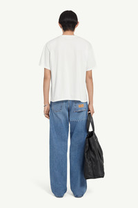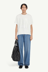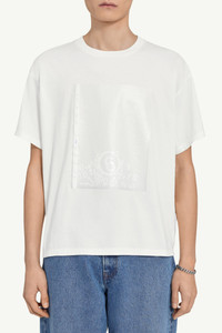 A soft structure for conceptual layering, this classic round-neck white T-shirt features the Maison's ‘Paperslip’ motif: a floating slip printed with its full numeric artwork, loosely scattered in cut-out effect. At the back, the signature white stitch line speaks to the Maison's discreet heritage. Product Details Item ID SH0GC0060M20048101 Primary fabric: 100% Cotton Cotton boxy T-shirt with graphic front Boxy silhouette, straight hemline Round neckline, short sleeves Front: Graphic with layered transparent print Back design: No additional detail White stitch line at the back Made in Italy Model is 190 cm tall and wears a size M.