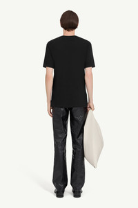 A new take on an archival graphic, this cotton T-shirt features a spotlight-effect print inspired by the lighting rig used during the runway show. The faded beam motif recalls the energy of backstage preparation, casting a ghosted light across the chest. At the back, the white stitch line highlights the MM6 signature. Product Details Item ID SH2GC0028M20048900 Primary Fabric: 100% Cotton Crew-neck T-shirt in cotton jersey Spotlight-effect graphic print at the chest Short sleeves White stitch line at the back Made in Italy Model is 186 cm tall and wears a size M.
