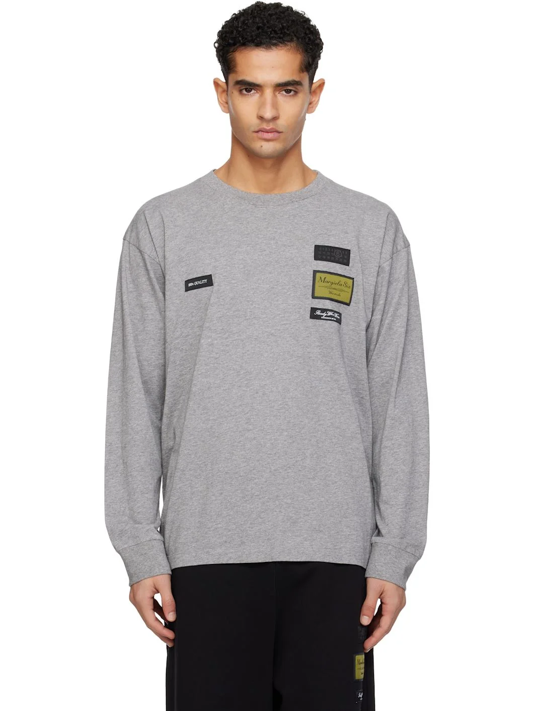 Cotton jersey T-shirt. · Rib-knit crewneck and cuffs · Logo patches at front · Dropped shoulders · White stitching at back collar Supplier color: Light grey melange 100% cotton. Made in Portugal 261188M213003