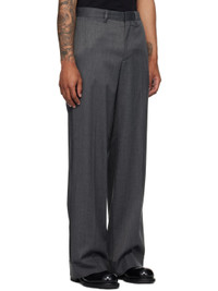Stretch virgin wool-blend twill trousers. · Exposed seams throughout · Belt loops · Three-pocket styling · Zip fly · Creased legs · Rolled cuffs · White stitching at back waist Supplier color: Dark grey melange Body: 54% polyester, 44% virgin wool, 2% elastane. Trim: 100% cotton. Made in Italy 252188M191008