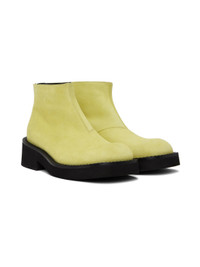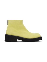 Ankle-high suede boots in green. · Square toe · Zip closure at heel · Grained leather and suede lining · Extended trim at welt · Block heel with rubber injection · Foam rubber platform sole · Heel: H2" · Platform: H1" Supplier color: Leek green