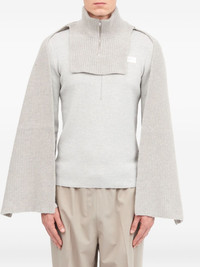 half-zip ribbed scarf Highlights - Light beige - Wool-blend - Ribbed knit - Half-zip fastening - Logo patch Made in Italy Composition Wool 80%, Polyester 20%