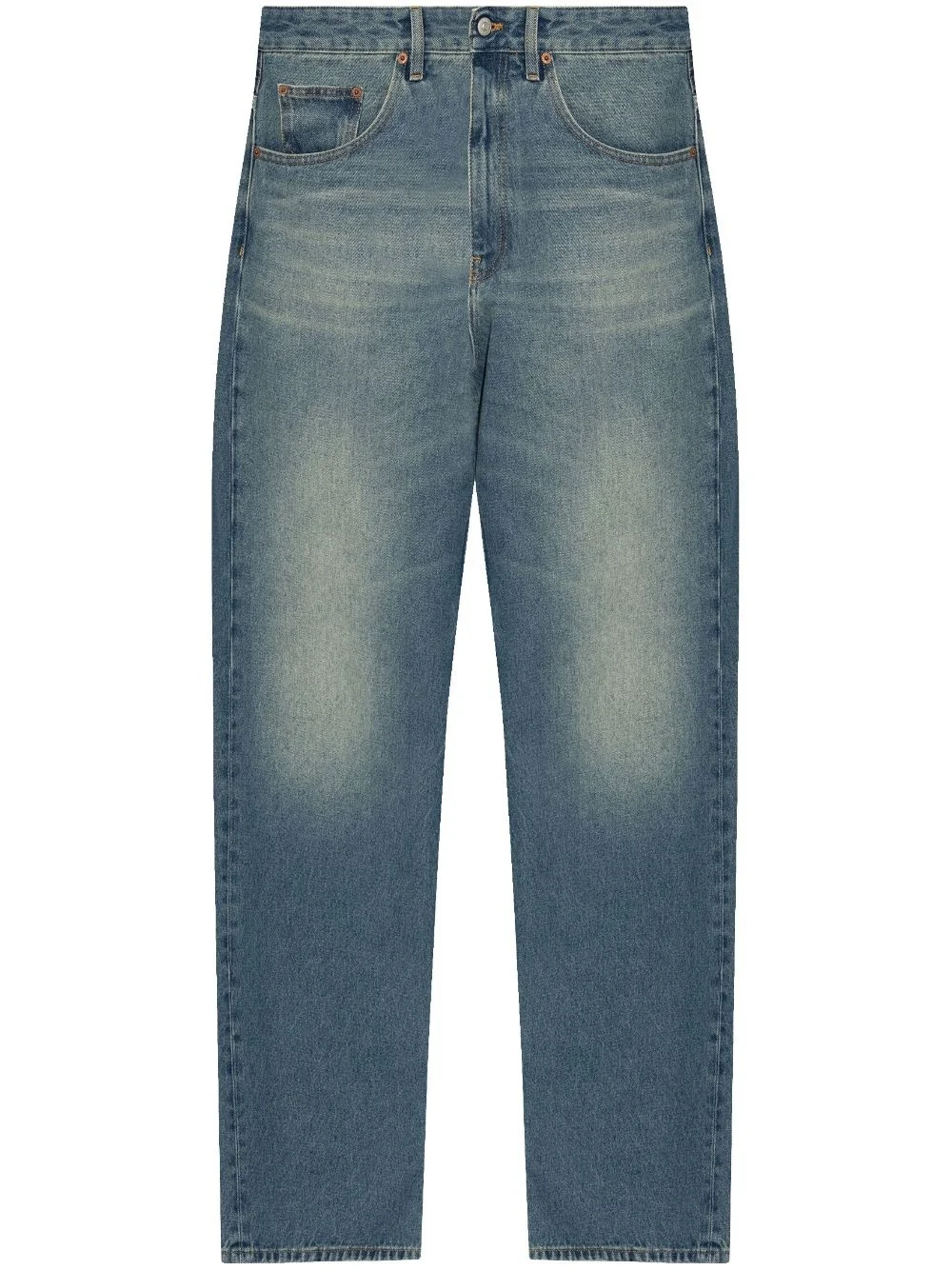 high-rise straight-leg jeans Highlights - Blue - Cotton - Denim - Mid-wash - Faded effect - Logo patch to the rear - High-rise - Belt loops - Front button and zip fastening - Classic five pockets - Straight leg - Long length Made in Italy Composition Cotton 100% Washing instructions Read Manufacturer Guidelines