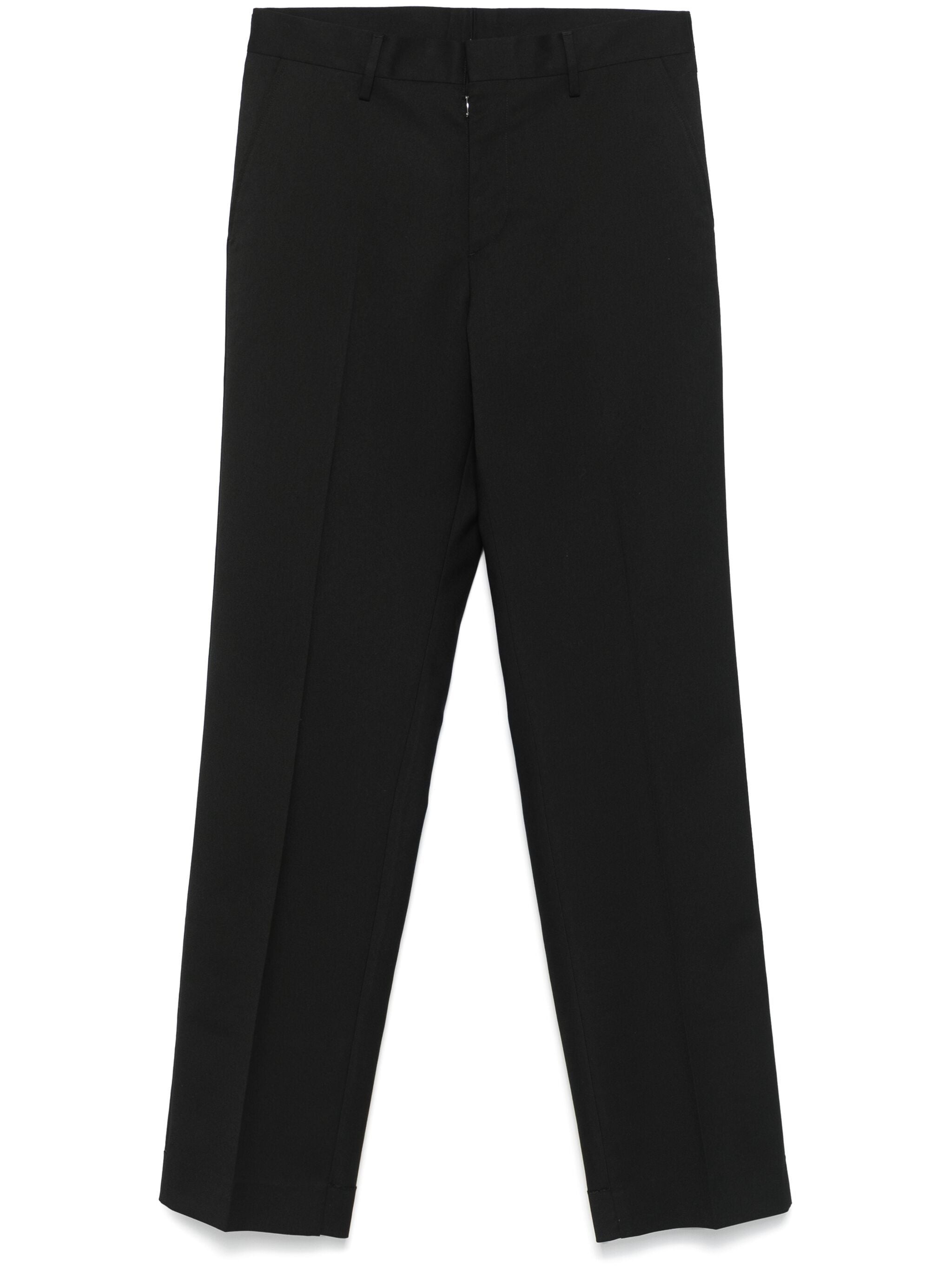 black concealed front fastening two side slit pockets two rear jetted pockets straight leg - Color: BLACK - Made in: Italy - Designer Style ID: M35227 SH0KA0035 900 Composition and care Lining Composition Cotton: 100.0%, Outer Composition Polyester: 69.0%, Outer Composition Viscose: 30.0%, Lining Composition Viscose: 100.0%, Outer Composition Elastane: 1.0%