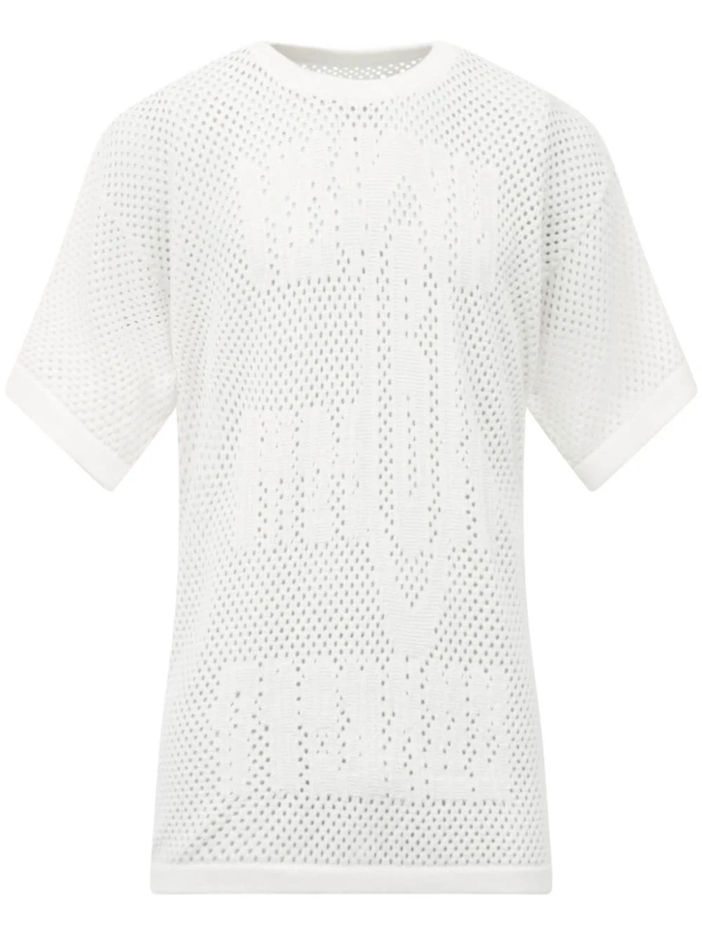 intarsia-knit cotton T-shirt Highlights - White - Cotton - Knitted construction - Intarsia-knit logo - Ribbed trim - Crew neck - Drop shoulder - Short sleeves - Straight hem Made in Italy Composition Cotton 100% SIZE & FIT Measurement CHEST 47.99 in(121.9 cm) SLEEVE LENGTH 7.99 in(20.3 cm) LENGTH 30 in(76.2 cm) WAIST 45.98 in(116.8 cm) Shoulder Width 22 in(55.9 cm)