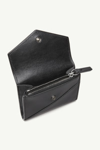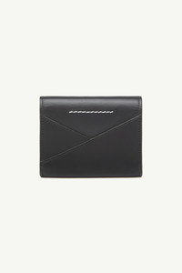 Crafted from soft leather, the Japanese 6 flap wallet showcases the Japanese line minimal aesthetic with its crossover panels. The design features the brand's numeric signature embossed on the front, button closure, a rigid zip pocket construction to hold coins, as well as a flat pocket. The new MM6 printed artwork adorns a front label. Product Details Item ID SA5UI0010P6418T8013 Body: 100% calf leather Inside: 100% calf leather Lining: 76% polyurethane, 17% polyester, 7% viscose-rayon Flap wallet in soft smooth leather Embossed MM6 numeric signature at the front White stitch line at the back Button closure Zip pocket Flat pocket Made in Italy Height: 8 cm/3 in Length: 10 cm/4 in Clean with a gentle leather cleanser and a damp microfiber cloth