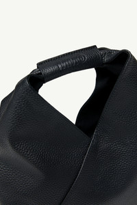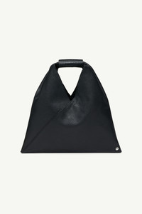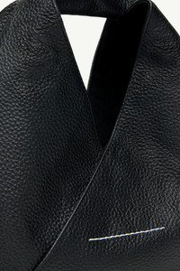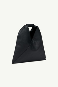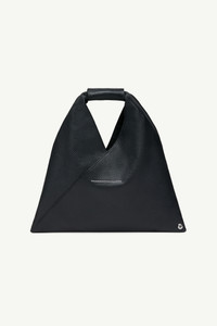 Japanese bag in grained leather. First introduced as part of the Autumn-Winter 2009 collection, the Japanese bag has since become MM6’s most emblematic accessory. Its distinctive triangular silhouette is inspired by the Japanese art of paper folding, origami. The buttons at its edges allow for the bag to change form through folding, evoking the Maison’s deconstructionist design codes. Each season, the Japanese bag is reinterpreted in additional sizes and a variety of innovative fabrics, rendering the accessory timeless. Product Details Item ID SB6WD0013P4344T8013 Body: 100% calf leather Lining: 100% cotton Mini handbag in grainy leather MM6 numeric signature cuff Two snap buttons at the edge to change the shape White stitch line at the back Button closure Inside pocket with button closure Height: 32 cm Width: 7 cm Length: 32 cm Handle drop: 9,5 cm Clean with a gentle cleanser and a damp microfiber cloth