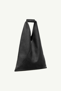 First introduced as part of the Autumn-Winter 2009 collection, the Japanese bag has since become MM6’s most emblematic accessory. The bag features two snap buttons at its edges that allow it to change form through folding, just like the origami that inspired its silhouette. The Japanese classic small bag in grainy leather features a cuff adorned with the numeric artwork and an inside pocket with button closure. The brand’s discreet yet distinct signature, a horizontal line of white stitches, is found on the back. Product Details Item ID S54WD0043P5691T8013 Body: 100% calf leather Lining: 100% cotton Small handbag in grainy leather MM6 numeric signature cuff Two snap buttons at the edge to change the shape White stitch line at the back Button closure on leather detail Inside pocket with button closure Height: 42 cm/16,5 in Width: 2 cm/0,8 in Length: 34 cm/13,4 in Handle drop: 12 cm/4,7 in Clean with a gentle cleanser and a damp microfiber cloth