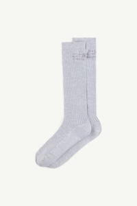 Knee-high socks with a ribbed structure and elongated silhouette. Finished with the MM6 numeric artwork at the top. Product Details Item ID S52TL0038M13244856 Primary fabric: 71% cotton 25% polyamide-nylon 4% elastane-spandex Gauge 14 Ribbed knit structure Numeric logo motif at the side Made in Italy