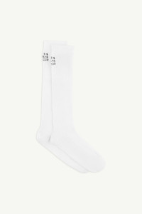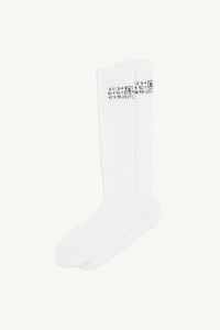 Knee-high socks with a ribbed structure and elongated silhouette. Finished with the MM6 numeric artwork at the top. Product Details Item ID S52TL0038M13244101