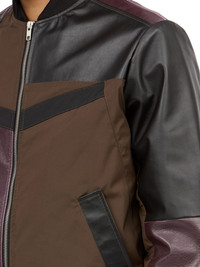 leather-paneled bomber jacket Highlights - Dark brown - Leather panels - Zip front - Ribbed cuffs - Patchwork design Made in Italy Composition Polyester 100%, Calf Leather 100% Washing instructions Read Manufacturer Guidelines