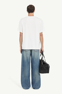 This cotton jersey T-shirt features Jacquard-inspired printwork combining stamped graphics, handwritten annotations, and archival motifs. Referencing the feel of vintage library cards, the design transforms everyday markings into a nostalgic narrative, layering personal detail with bold visual impact. At the back, the MM6 white stitch line asserts its signature. Product Details Item ID SH0GC0070M20170101 Primary fabric: 100% cotton Cotton jersey Graphic print on the front Short sleeves Crew neck Made in Italy