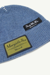 This wool blend beanie features vertical stitch detailing from crown to hem, a graphic interruption across its ribbed knit. Exposed labels, usually found inside garments, are brought outside, challenging conventions of finish and construction. Product Details Item ID S52TB0014M13218490 Primary fabric: 100% wool Gauge 7 Woven logo label on the front Ribbed turn-up brim Back stitch detailing Made in Italy