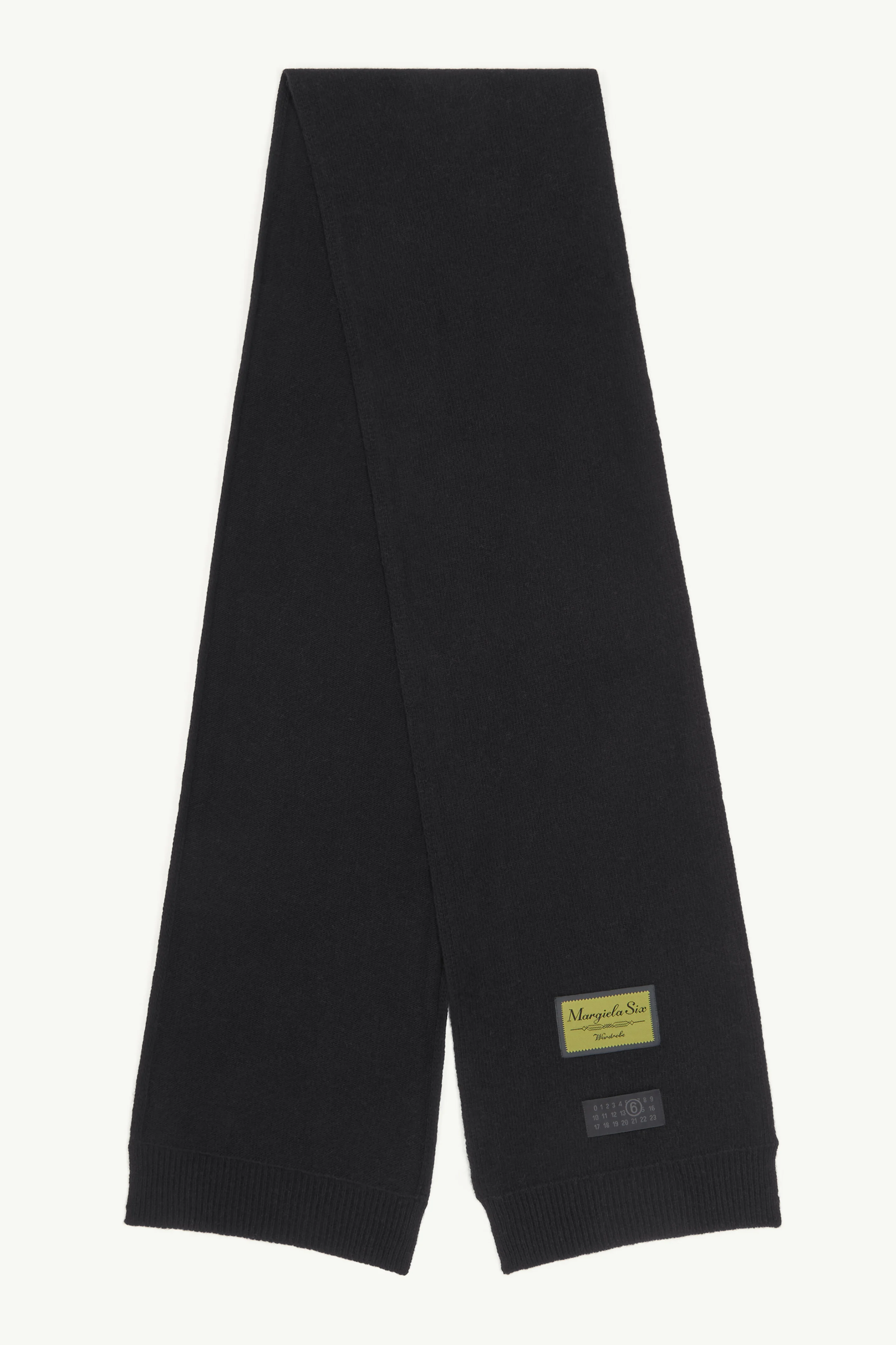 Knitted in a wool blend with ribbed hems, this scarf elevates a minimal silhouette with conceptual detail. MM6 labels usually reserved for the inside are brought outward, transforming a cold-weather staple into a statement of process and construction. Product Details Item ID S52TE0060M13218900 Primary fabric: 100% wool Gauge 7 Applied logo labels at the front and back Made in Italy