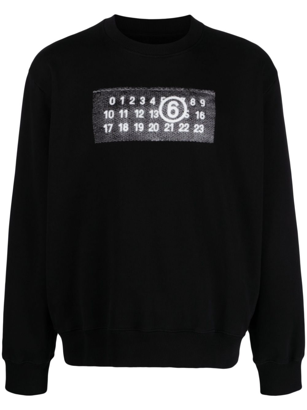 logo-print cotton sweatshirt Capturing a casual mood, this MM6 Maison Margiela black sweatshirt is adorned with the label's iconic Numbers motif on the chest. It's crafted from Portuguese cotton and cut in a relaxed fit. Highlights - Black - Cotton - Jersey texture - Signature single-stitch logo - Logo print to the front - Crew neck - Long sleeves - Ribbed cuffs and hem - Straight hem Imported Composition Cotton 100% SIZE & FIT Model measurements Height 6 ft 2 in(1.87 m) Bust/Chest 33.5 in(85 cm) Hips 38.6 in(98 cm) Waist 28.3 in(72 cm) FittingInformation Designed for a relaxed fit, this piece allows for comfort and movement when worn Made from a midweight non-stretch fabric, this piece offers minimal elasticity when worn This piece fits true to size – take your usual size