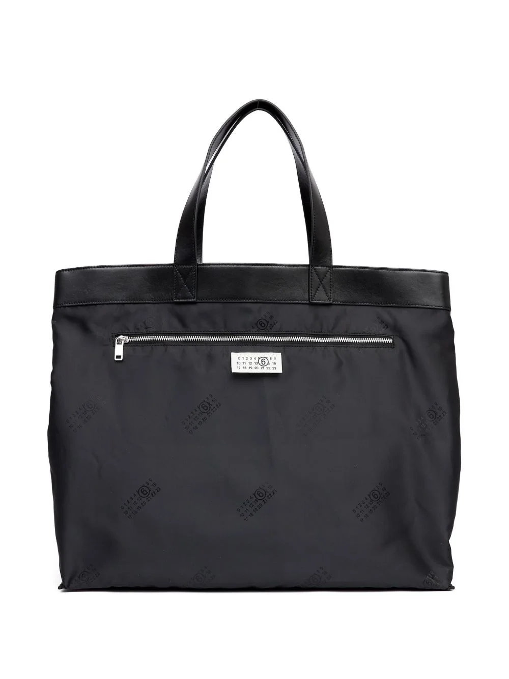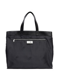 logo-printed tote bag Highlights - Black - Logo print throughout - Top handles - Zip pocket at front Imported Composition Outer: Nylon 100%, Calf Leather 100%, Polyester 100%