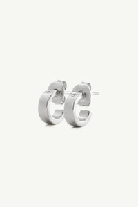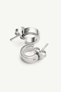 Brass earrings with 4 mm width. The MM6 numeric minimal signature is engraved on the front. Product Details Item ID SM7VG0057SV0310951 Composition: 100% brass Width: 4 mm Polished silver Numeric signature hoop earrings Engraved MM6 numeric signature at the front Made in Italy The item comes in a white zipped bag