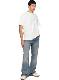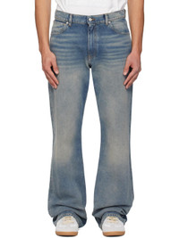 Non-stretch denim jeans. · Fading, whiskering, and subtle distressing throughout · Belt loops · Five-pocket styling · Zip fly · White stitching at back · Logo patch at back pocket · Logo engraved silver-tone hardware · Contrast stitching in tan Supplier color: Medium blue Body: 100% cotton. Trim: 65% polyester, 35% cotton. Made in Italy 252188M186013