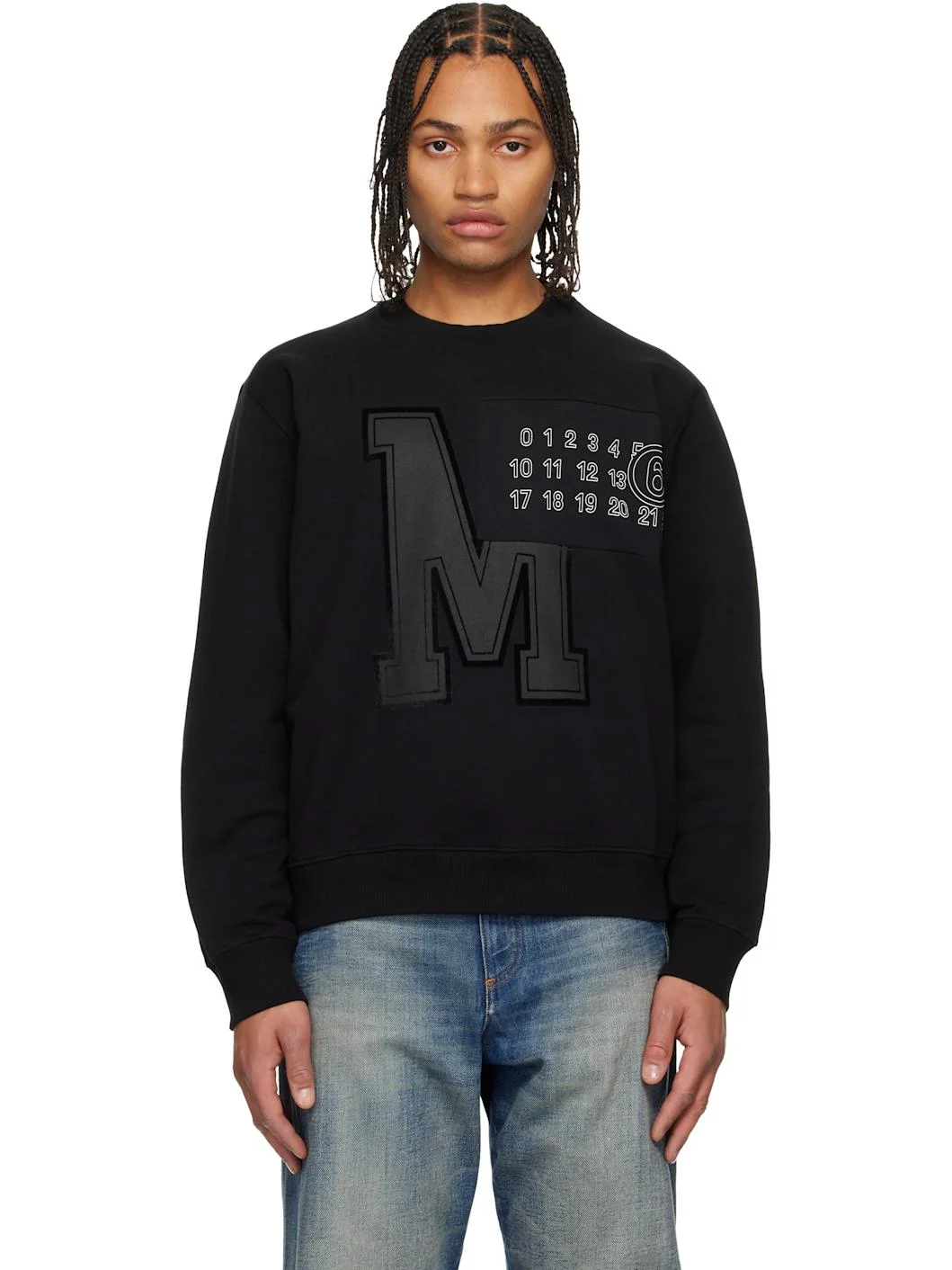 French terry sweatshirt. · Rib-knit crewneck, hem, and cuffs · Logo applique and printed logo at front · White stitching at back collar Supplier color: Black 100% cotton. Made in Italy 252188M204000