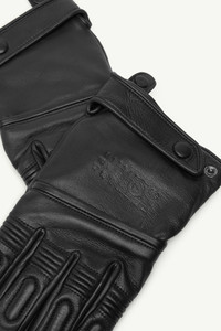 Crafted in glazed lambskin with silk linings, this two-piece glove set is the result of a collaboration between MM6 and Agnelle – family-owned French glove makers since 1937. Technical padding and stitching align with utilitarian references, while the removable cuff overlay introduces a layered, customisable silhouette. The Maison's debossed numeric artwork serves as a subtle signature. Product Details Item ID SH2TS0003M07014900 Primary Fabric: 100% Glazed Lambskin Lining: 100% Silk Two-piece glove set Removable extended cuffs with zip closure Dual pouch pocket and snap fastenings Padded silhouette Stitched finger articulation Debossed MM6 numeric artwork
