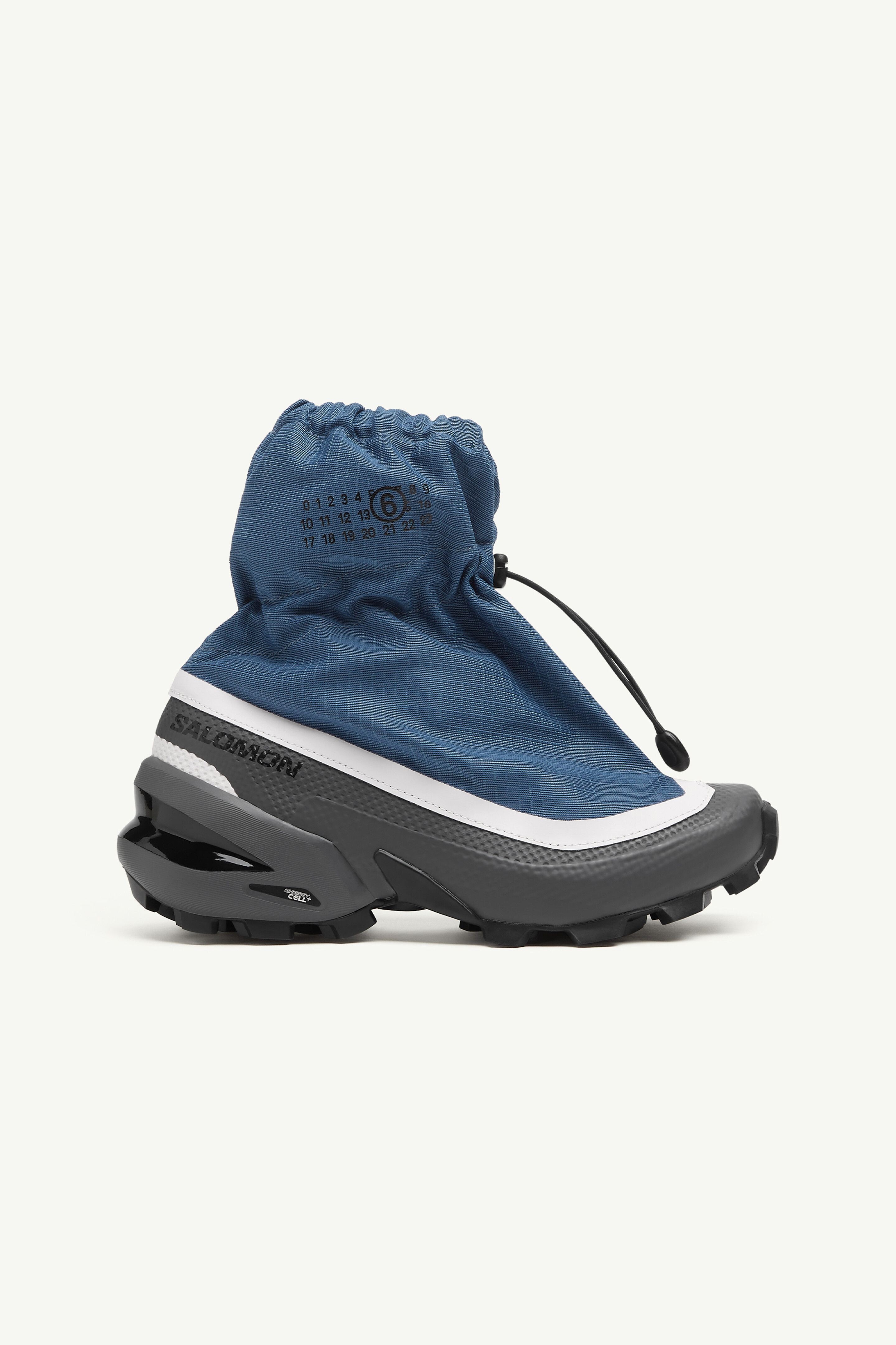 MM6 Maison Margiela x Salomon Cross High sneakers illustrate the capsule's hybrid perspective, marrying a progressive aesthetic with performance-ready credentials. Features such as a reinterpreted lug– derived from Salomon’s signature Speedcross pattern – and an inner mesh slip-on shoe nod to trail running heritage. MM6’s unconventional yet casual design ethos is seen with bold hues and a built-in ripstop gaiter, resulting in a distinctly modern silhouette. The MM6 x Salomon collaboration speaks to the brands’ shared ethos of transitional design, first seen in the Maison’s Autumn/Winter 2022 show. Drawing inspiration from the everyday, the collection is a celebration of the unsung beauty of quotidian dressing; of the eclectic blur of clothes that pass us by on our city streets. Product Details Item ID S59WS0216P5744H9596 Upper: 100% polyester Contrast: 100% polyurethane Lining: 100% polyester Inside: 100% polyester Sole: 100% rubber Synthetic MM6 x Salomon cross mid sneakers Elastic closure MM6 numeric signature at the front