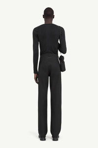 The new MM6 x Salomon x GORE-TEX collaboration provides durably waterproof, windproof and breathable protection with a long product life, and is PFC free with a reduced carbon footprint. This new collaboration is a continuation of the commitment of both MM6 and Salomon’s shared ethos of transitional design, first seen in the Maison’s Autumn/Winter 2022 show. Made from durable polyester, these 5-pocket trousers are cut to a straight leg. They are detailed by belt loops and by the Salomon logo and the MM6 numeric signature at the front. MM6’s discreet yet distinct signature, a horizontal line of white stitches, is also found on the back of the garment. Product Details Item ID SH0LA0013M35200900 Composition: 100% polyester GORE-TEX 5-pockets trousers New GORE-TEX products provide durably waterproof, windproof and breathable protection with a long product life, and are PFC free with a reduced carbon footprint Regular waist Straight leg Belt loops Salomon logo and MM6 numeric signature at the front White stitch line at the back Made in Portugal Model is 6'2" tall and wears a size L.