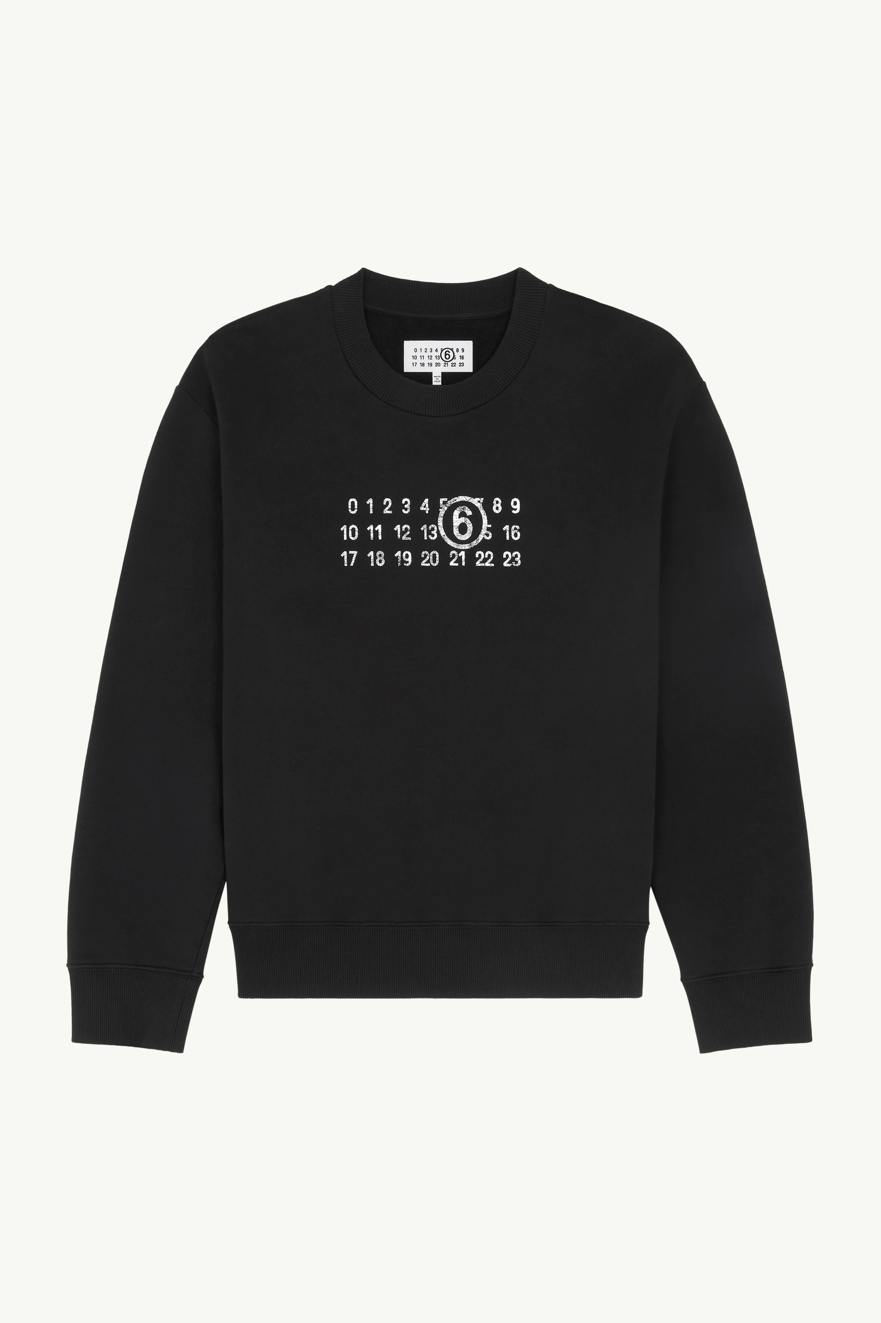 A cotton jersey sweatshirt with a ribbed round neck, featuring the Maison’s numeric artwork print at the front. At the back, the signature white stitch line reinforces MM6’s deconstructed approach, offering a minimalist expression of the brand’s unmistakable identity. Product Details Item ID SH2GU0021M25004900