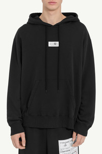 This design balances long drawstrings and ribbed accents with a contrasting numeric print, creating small moments of tension within a familiar shape. The front pocket and white stitch line complete its understated profile, lending just enough detail to gently shift the expected. Product Details Item ID SH0GU0018M25012899 Primary fabric: 100% cotton Lining: 100% cotton Unbrushed sweat jersey hooded sweatshirt MM6 numeric signature at the front Crewneck Dropped shoulder Ribbed trims White stitch line at the back Made in Portugal
