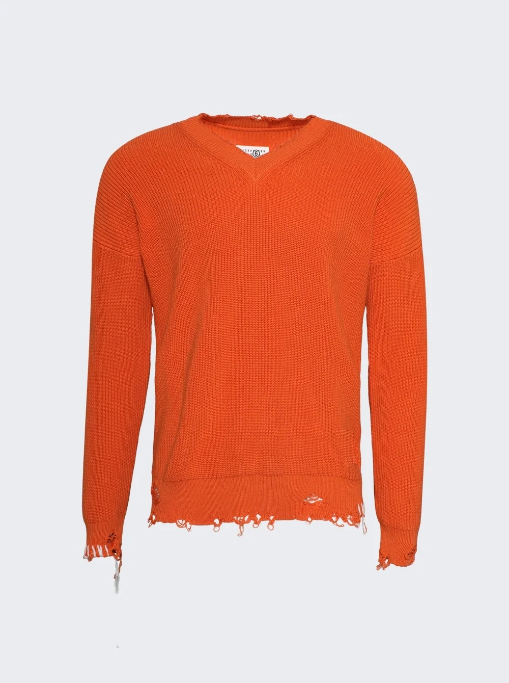 Details - Relaxed fit - V neckline - Long sleeves - Logo Label on side - Distressed design - Care according to label - Material: 100% Cotton - Model is 6'1"/185cm and is wearing a size M Brand Style: SH0HN0001 M13089 Designer/Brand: MM6 MAISON MARGIELA