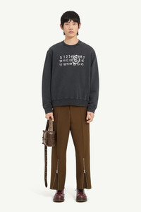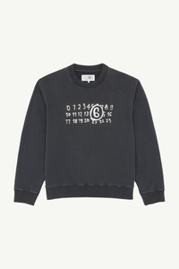 Exemplifying a commitment to urban creativity and self-expression, this classic crewneck is elevated with the Maison's hand-written numeric artwork on the front, while ribbed trims provide a subtle contrast and enhanced fit. At the back, a discreet white stitch line subtly showcases the MM6 signature. Product Details Item ID SH2GU0011M25004900 Composition: 100% cotton Cotton jersey sweatshirt Crewneck Hand written numbers logo print Ribbed trims White stitch line at the back Made in Italy