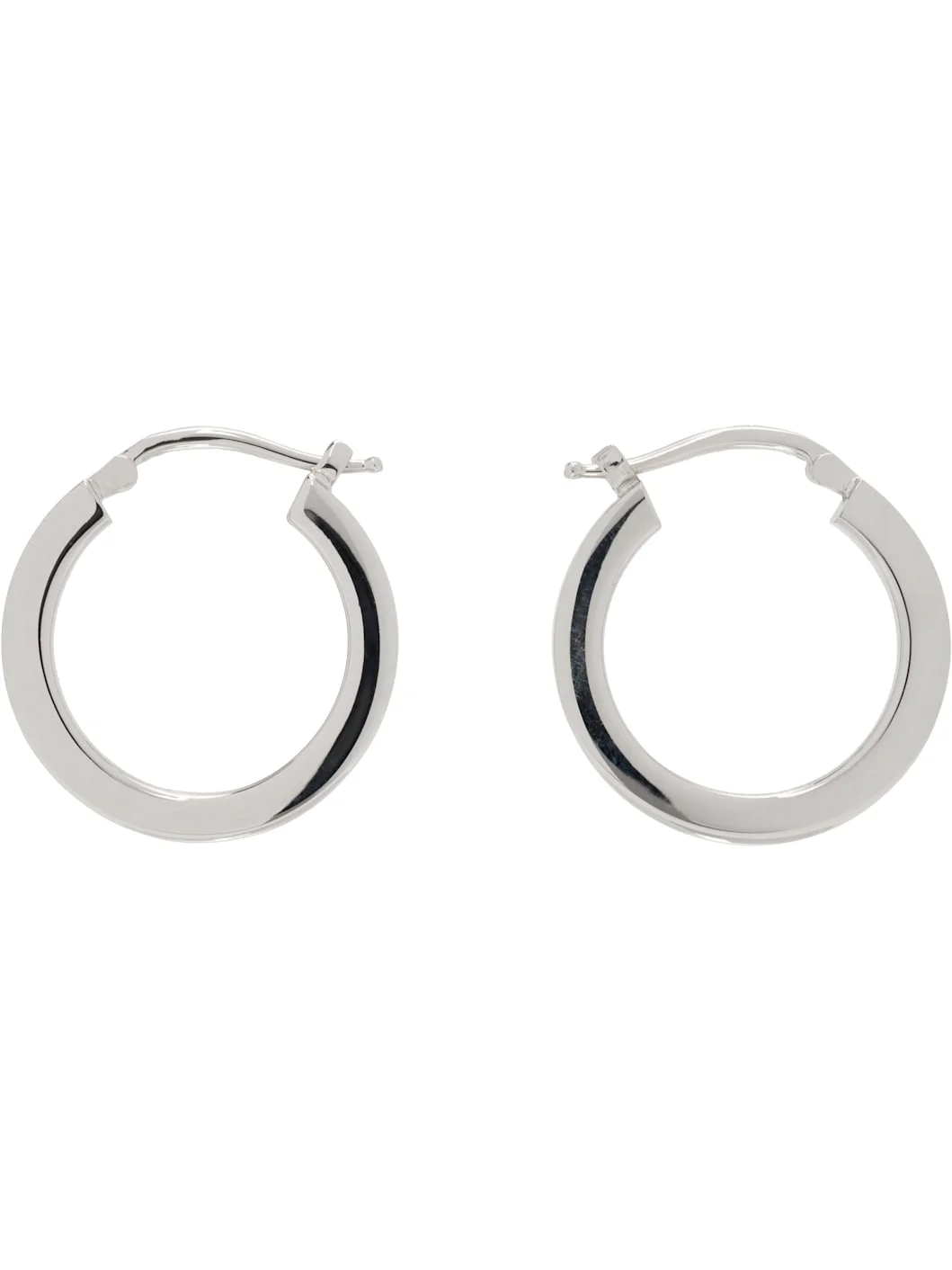 Pair of hoop earrings in silver-tone brass. · Logo etched at face · Hinged-post fastening · D0.5" Supplier color: Polished palladium Brass. Made in Italy 261188M144002