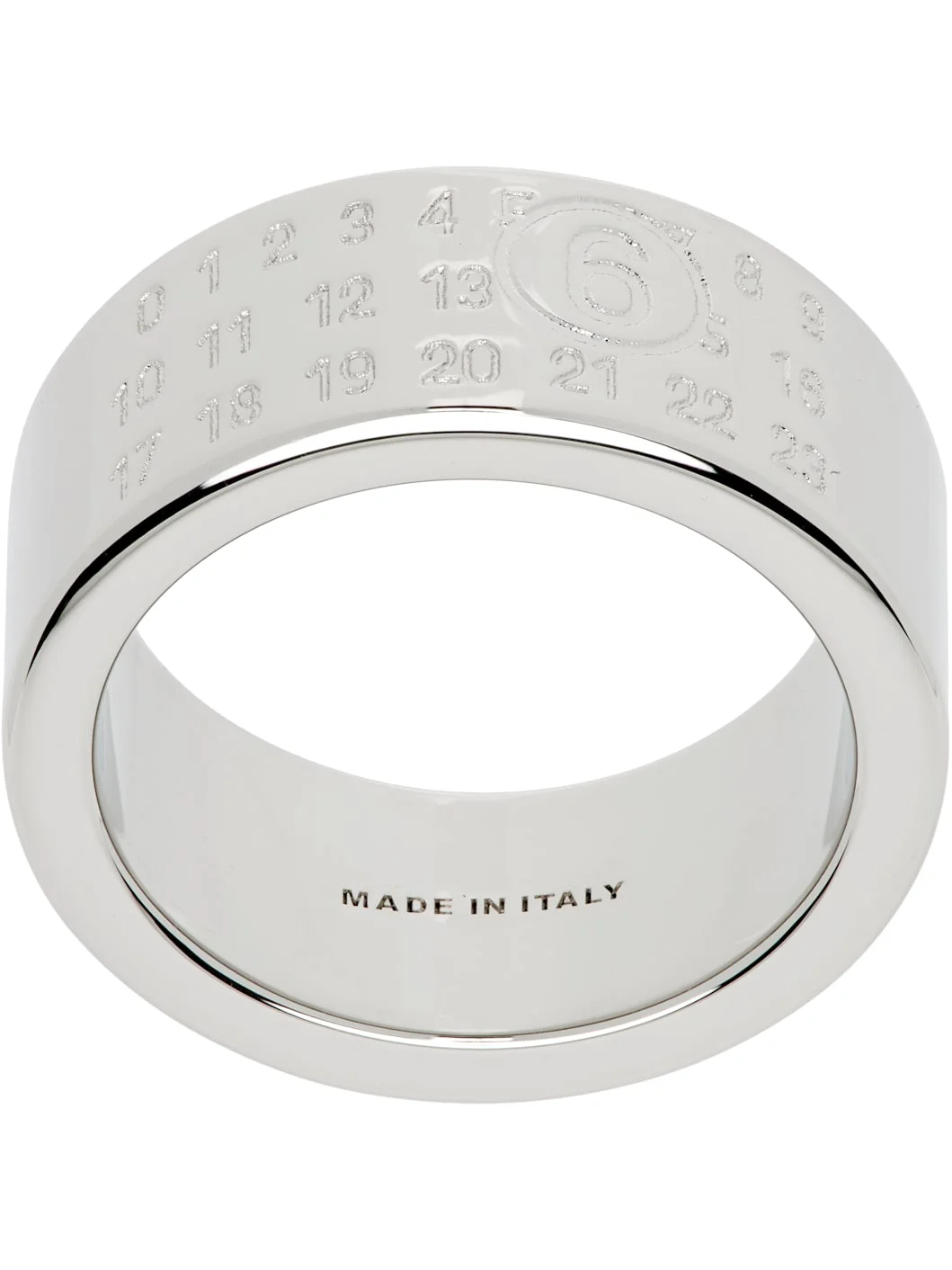 Band ring in silver-tone brass. Logo engraved at face. Supplier color: Polished palladio Brass. Made in Italy 261188M147008