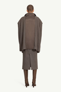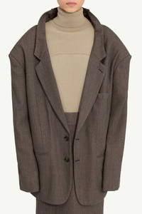 This tweed blazer distils construction to its barest form. At the back, an elongated satin panel reveals the garment’s process – an intentional excess that offsets the clean front and oversized cut. Finished with the MM6 white stitch line. Product Details Item ID S62BN0112M35636001F Primary fabric: 100% Wool Oversized tweed blazer Dropped shoulders Contrast satin back panel Notched lapels Two-button front closure Welt pockets at the front White stitch line at the back Made in Italy Model is 180 cm tall and wears a size 42.