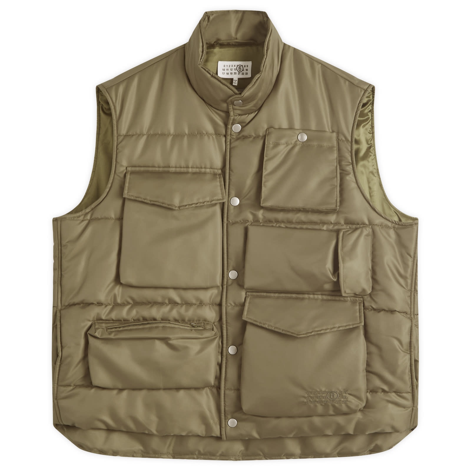 For elevated outerwear, MM6 Maison Margiela’s 5 Pocket Gilet is the must-have choice. Fresh from the diffusion line’s Pre-Fall 24 collection, this versatile layer features plenty of pocket space and a monochrome colourway that promises easy, everyday styling. - 100% Polyamide - Polyester Padding - Press Stud Closure - Multiple Front Pockets - Embroidered Branding