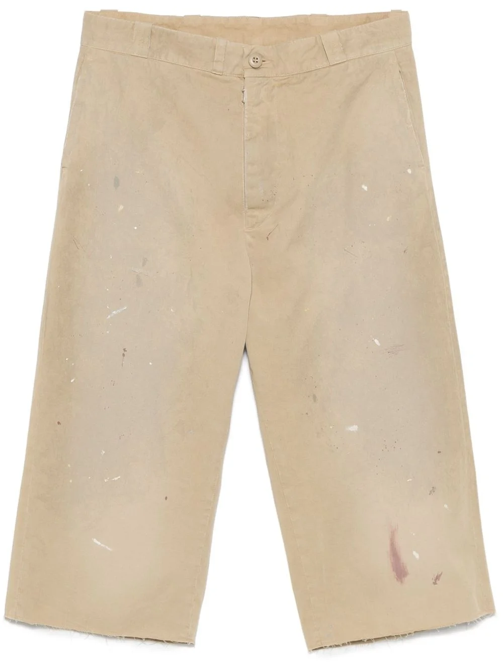 paint-splatter shorts Highlights - Sand beige - Concealed front button, hook and zip fastening - Two side inset pockets - Rear button-fastening pocket - Ripped detailing Made in Italy Composition Cotton 100% SIZE & FIT Model measurements Height 6 ft 1 in(1.85 m) Bust/Chest 38.58 in(98 cm) Hips 37 in(94 cm) Waist 30.31 in(77 cm) FittingInformation Designed with a wide leg, offering a loose and roomy fit Made from a midweight non-stretch fabric Washing instructions Machine Wash