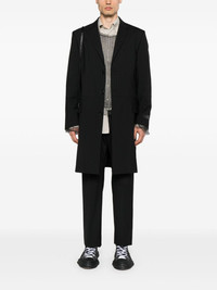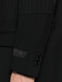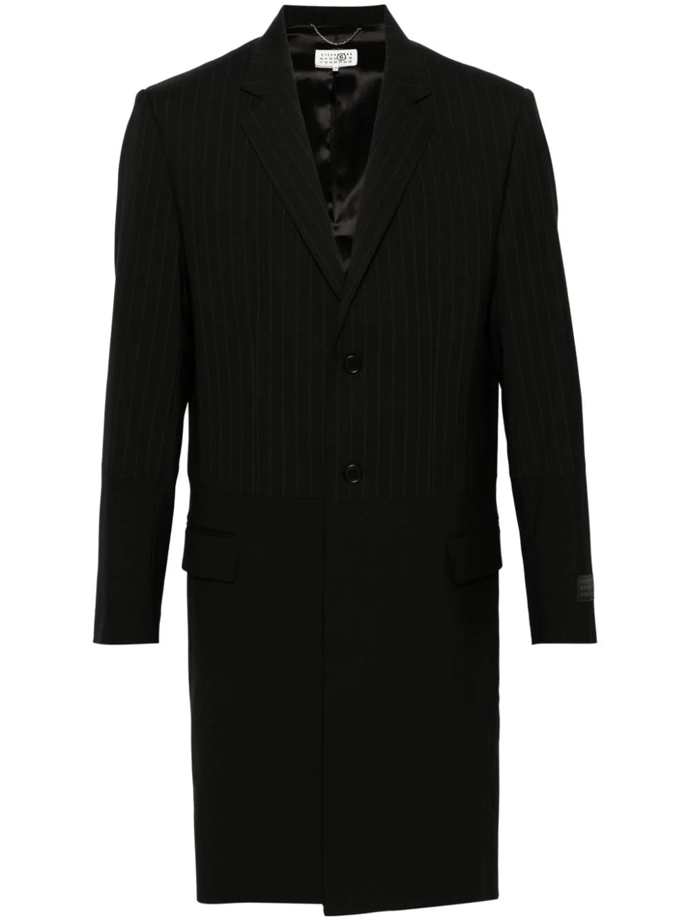 panelled single-breasted coat Highlights - Black - Panelled design - Pinstripe pattern - Signature single-stitch logo - Logo patch at the sleeve - Notched lapels - Front button fastening - Shoulder pads - Long sleeves - Buttoned cuffs - Two side flap pockets - Full lining - Rear slit - Straight hem Made in Italy Composition Outer: Polyester 54%, Virgin Wool 44%, Elastane 2% Lining: Viscose 100% SIZE & FIT Model measurements Height 6 ft 1 in(1.86 m) Bust/Chest 37.4 in(95 cm) Hips 36.22 in(92 cm) Waist 29.52 in(75 cm) FittingInformation Designed to be unstructured, offering a loose fit throughout The internal shoulder pads offer a structured shape Made from a midweight fabric This piece fits true to size – take your usual size