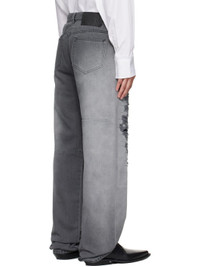 Non-stretch denim jeans. · Fading and distressing throughout · Belt loops · Five-pocket styling · Zip fly · Twill panel at knees · Logo patch at back waistband · White stitching at back waist Supplier color: Black 100% cotton. Made in Italy 252188M186010