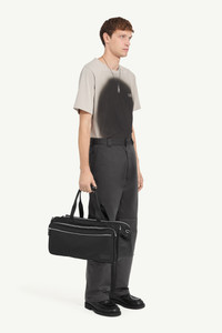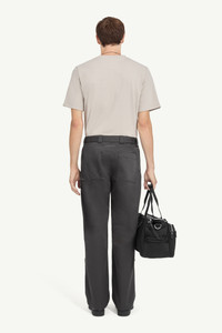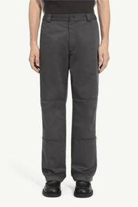 Straight-leg trousers in polycotton twill with raw thread detailing across the legs and back patch pockets. Belt loops and a button-front fastening complete the construction. At the back, the white stitch line marks the MM6 signature. Product Details Item ID SH0KA0044M35729855 Primary fabric: 65% polyester 35% cotton Pocket lining: 100% cotton Full-length wide-leg pants Frayed seam detailing on the legs Zip and button closure at the front White stitch line at the back Made in Italy