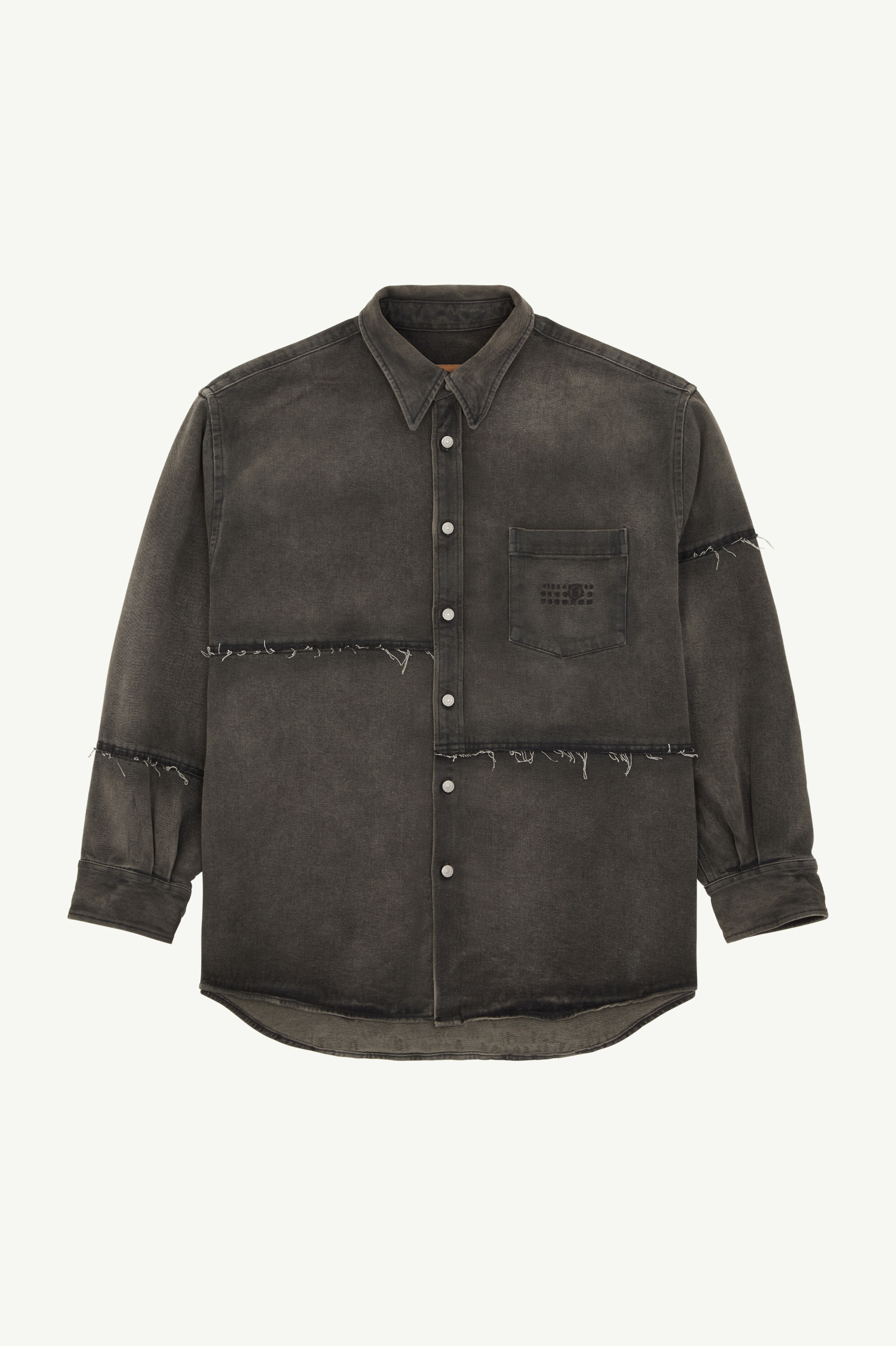 Explore the intersection of creativity and craftsmanship with this denim shirt, expertly tailored to be ready when worn. With its long sleeves and pointed collar, it features the MM6 numeric signature at the front and its iconic white stitch line at the back, celebrating raw creativity and subtle rebellion in every stitch. Product Details Item ID SH2DT0009S30848962 Composition: 100% cotton Washed black denim shirt Pointed collar Long sleeves Button closure MM6 numeric signature at the front Patch pocket Buttoned cuffs White stitch line at the back Made in Italy