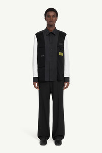 This shirt reworks tailoring codes with a reversed construction, presenting lining materials and exposed labels typically hidden inside. Contrasting sleeves and visible pockets heighten the subversive effect, reframing classic shirting through archival inspiration. At the back, the Maison’s white stitch line highlights its identity. Product Details Item ID SH0DT0038MTN149962 Primary fabric: 63% cotton 37% polyester Fabric 1: 100% cotton Fabric 2: 100% viscose-rayon Sleeve lining: 100% viscose-rayon Patch pocket details on front Long sleeves Shirt collar Center button closure White stitch line at the back Made in Italy